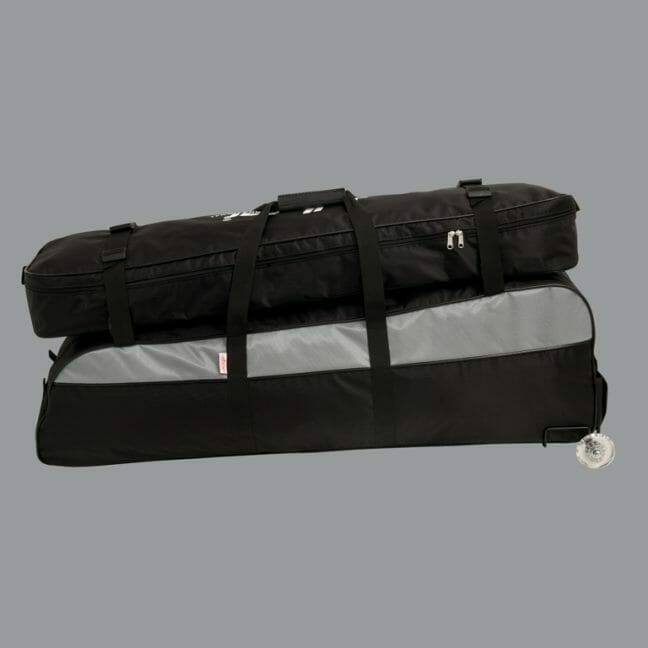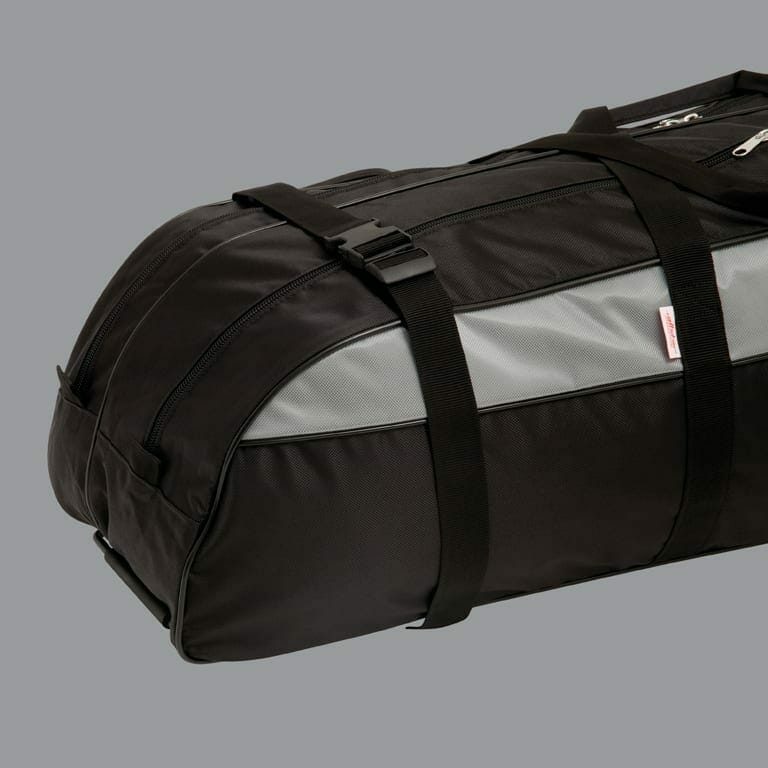 メインの収納も2つあり、さらに3つのサイドポケット、バックルで取り外し可能なトップバッグがありますので3種目分の剣と防具を入れられる収納力があります。